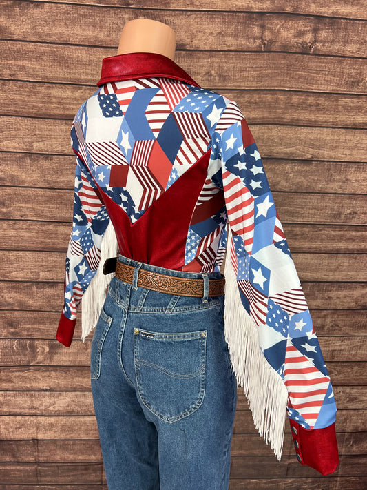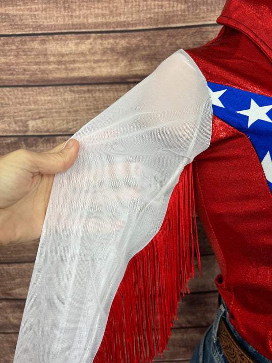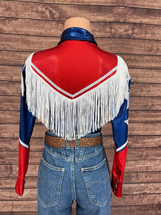 Firecracker Rodeo Shirt with White Fringe