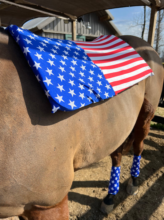 Western Saddle Pad COVER in Blue and White Star / Red and White Stripe