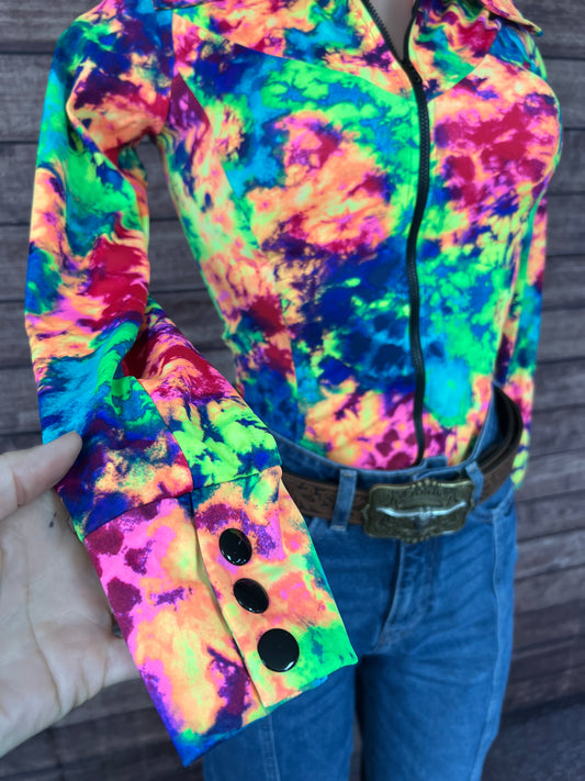 Acid Splash Tie Dye Zipper Front Rodeo Shirt