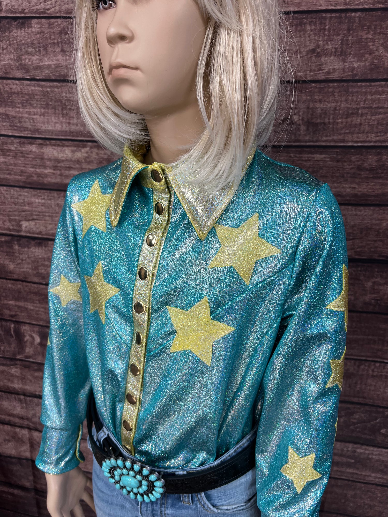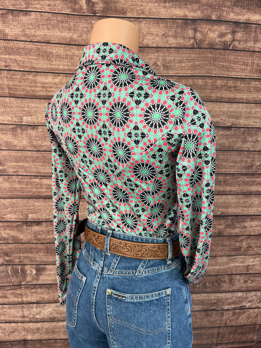 Turquoise Kaleidoscope Snap Front Rodeo Shirt