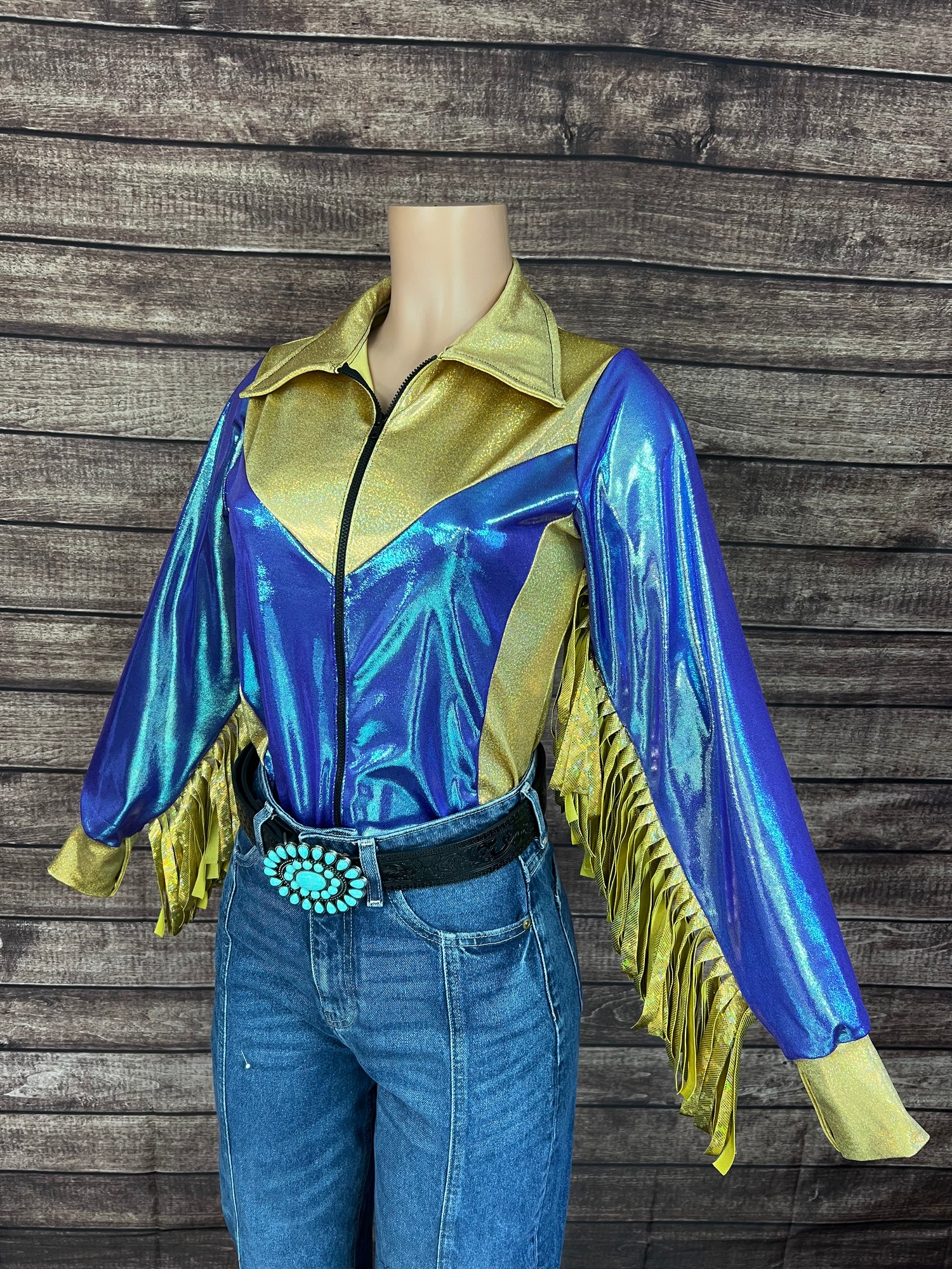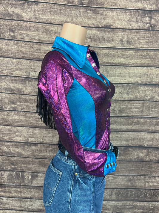 Rainbow Shattered Glass Rodeo Shirt with Thunderbird Fringe