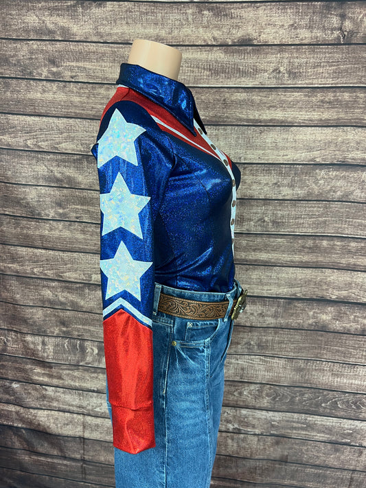 Star Spangled Mesh Sleeve, Snap Front Rodeo Shirt