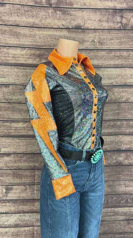Orange Kaleidoscope Lightning Bolt Rodeo Shirt
