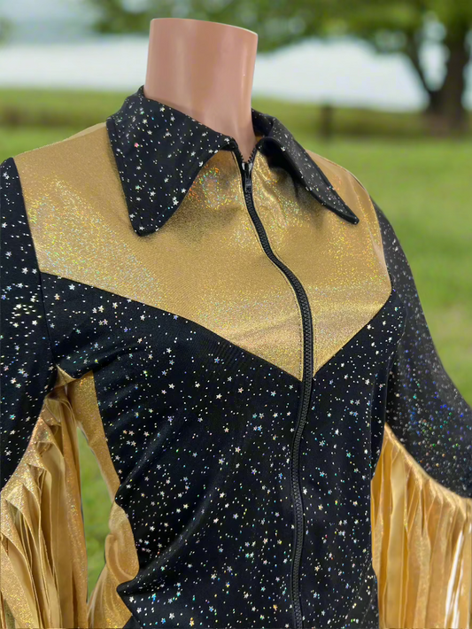Gold and Black Rodeo Shirt with Thunderbird Fringe