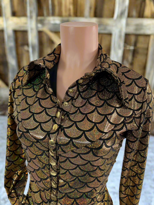 Gold Dragon Scale Snap Front Metallic Rodeo Shirt