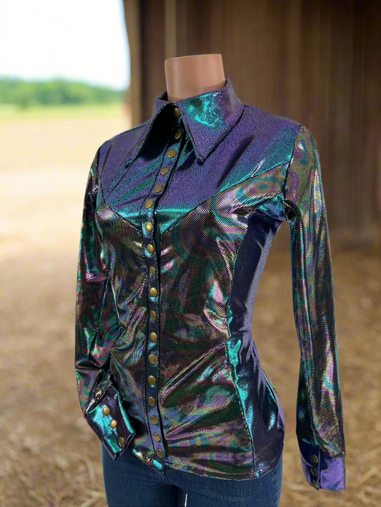 Oil Slick and Scarab Snap Front Holographic Rodeo Shirt