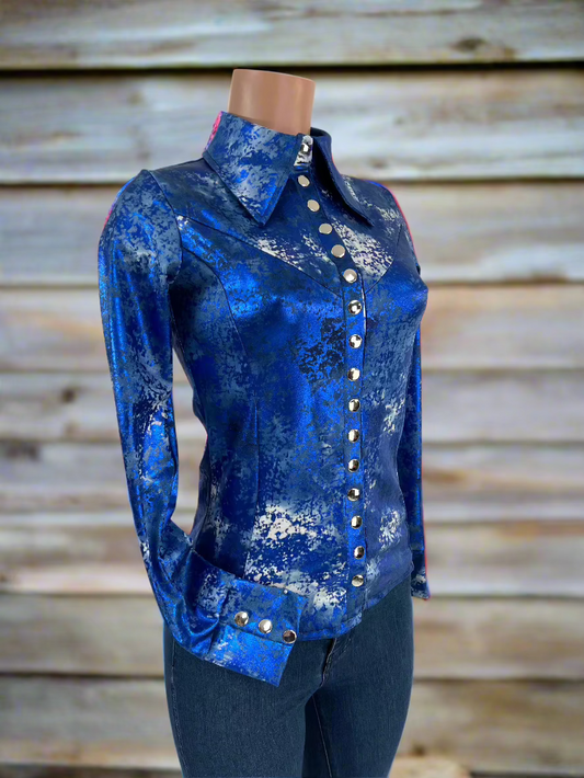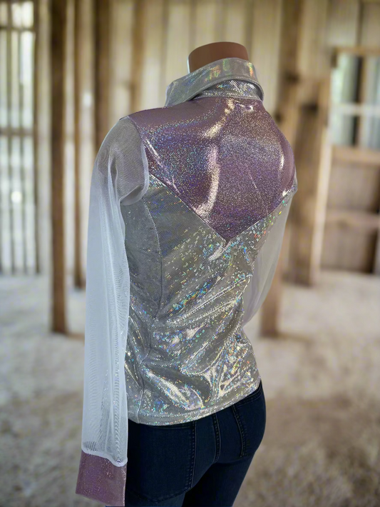 Lilac Kaleidoscope Mesh Sleeve, Snap Front Rodeo Shirt