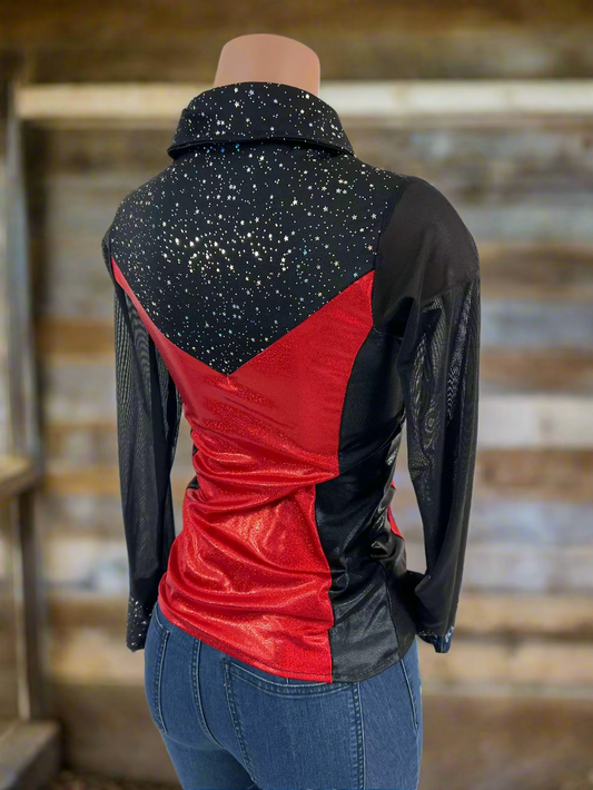 READY to SHIP Black Mystique Mesh Sleeve Snap Front Rodeo Shirt SMALL