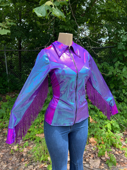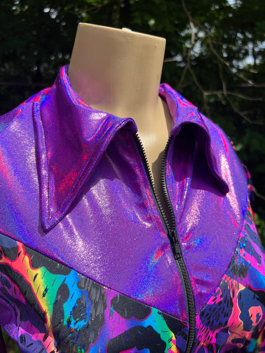 Grape Holo and Rainbow Leopard Rodeo Shirt