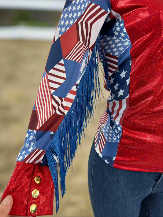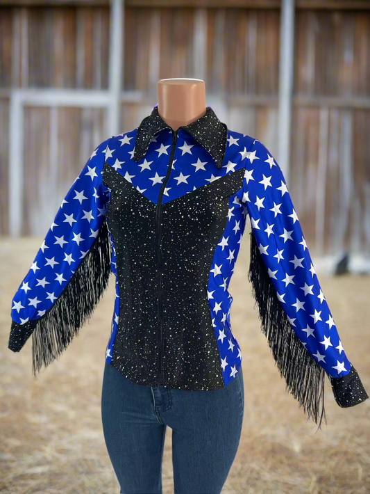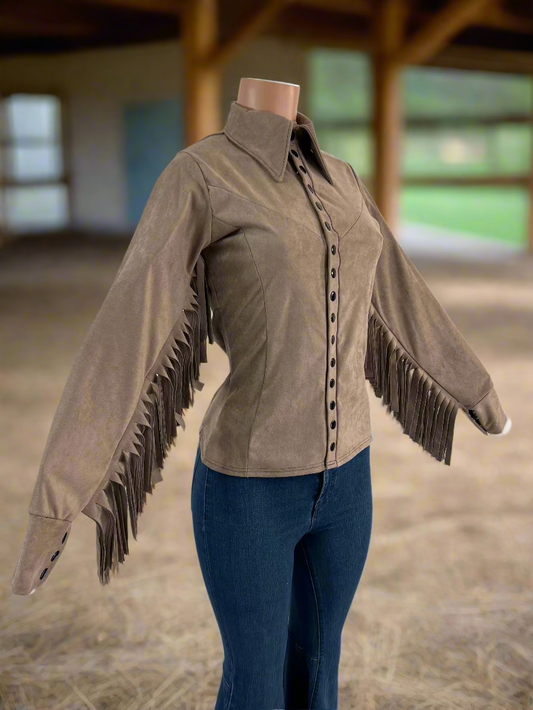 Rocky Mountain Faux Suede Rodeo shirt with Fringe- Snap Front