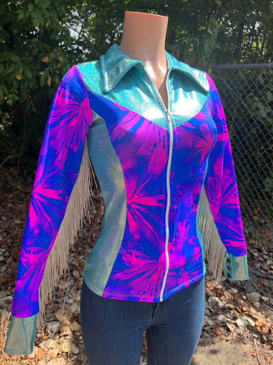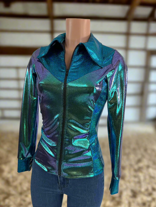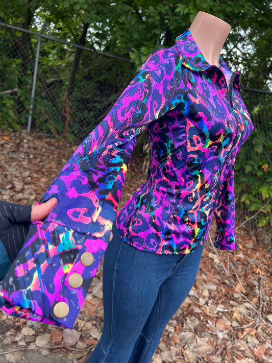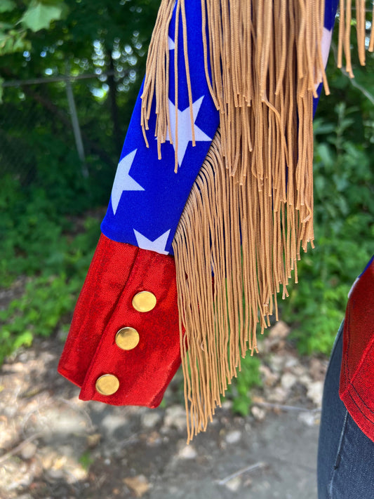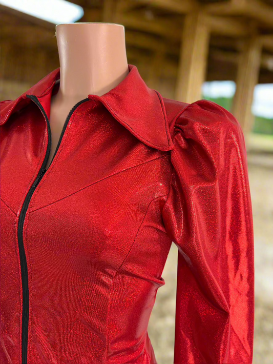 Red Sparkly Rodeo Shirt with Puffed Sleeves